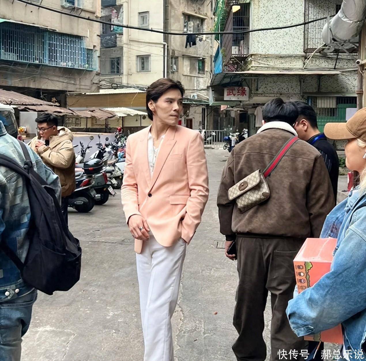 刚刷到两张街拍照,真把我看愣了——前脚还在潮州街头被当成送外卖的,后脚转场汕头,直接换上一身粉西装,活像从某家婚庆公司临时借来的高定。 讲真,他这状态不太对劲。头发死命往脑门上糊,整张脸刷了层白漆似的,跟旁边那盘油亮卤鹅摆一块儿,反光效果都快打平了。远看像戴了张硅胶面具,近看更糟心:眼窝深陷、眼袋挂秤砣,嘴唇干得发灰,连硬撑个微笑都像在完成KPI。那身西装料子薄得透风,肩线塌、腰线飘,白内搭一塞进去,整个穿搭逻辑当场宕机。